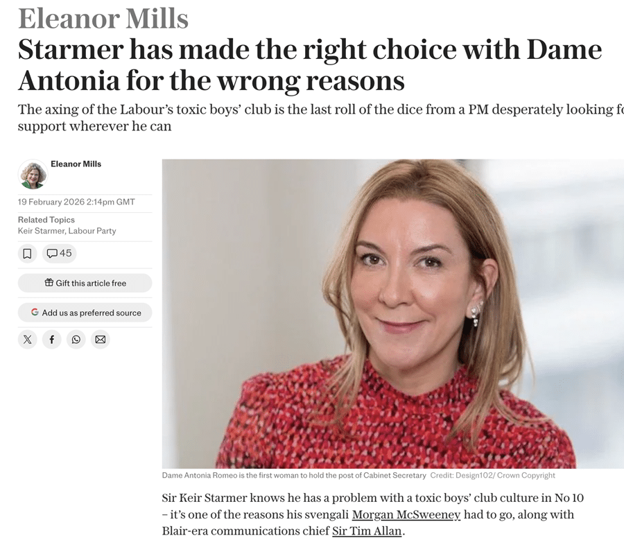 Another Queenager in the news this week was Dame Antonia Romeo, the first ever woman to be Cabinet Secretary in 110 years. HOORAY! I wrote about her for a Telegraph column. Striking to me was the misogynistic briefing from the toxic boys club in Westminster against Romeo before the announcement: They dug out an ancient investigation into her expenses when she was in New York and also accused her of bullying – a charge which had been thoroughly examined and found to be groundless.