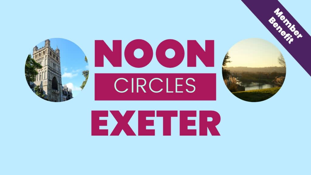 Our NOON Circle Exeter is hosted by fellow Queenager Sally Jackson, and co-hosted by Victoria Riddiford. It’s open to anyone who has a Standard, Pro, Founder or Corporate Membership on NOON. Be sure to read the Events Terms & Conditions.