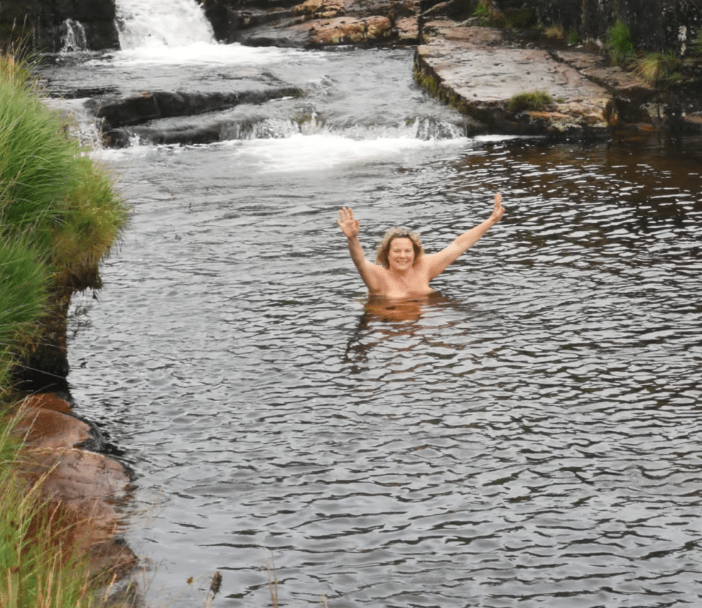 Yesterday I swam naked in the rain in a river high on Dartmoor, its reddish water made my skin softer than any moisturiser. I’ve always loved the water, when I was a child they could never get me out, they called me the fish – that is definitely still the same.
